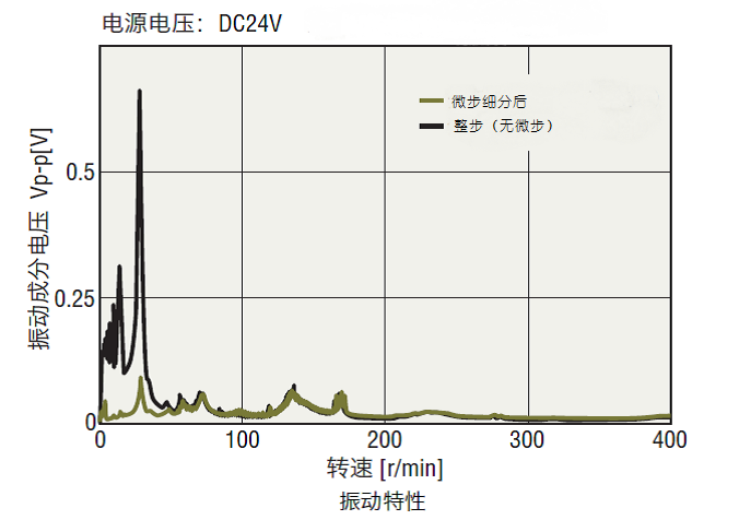 利用微步驅(qū)動技術執(zhí)行步距角的電氣細分化,電動機運轉(zhuǎn)更加平穩(wěn),使低速領域的階段性運轉(zhuǎn)更加順暢,并如下圖所示地大幅改善振動。