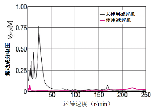 為了避開容易產(chǎn)生振動的低速領域,可以先提高電動機的轉(zhuǎn)速,再利用減速機降低轉(zhuǎn)速,避開共振領域,在低速時達到抑制振動的效果。