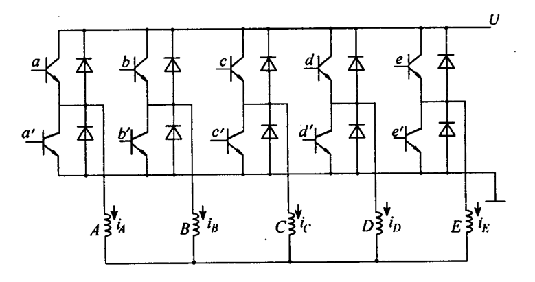 使用H橋驅(qū)動(dòng),每相繞組必須用一個(gè)H橋。當(dāng)電機(jī)的相數(shù)較多時(shí),所用的開關(guān)管較多,成本較高。為此,可采用多相橋式驅(qū)動(dòng)電路,使開關(guān)管的數(shù)目減少一半。